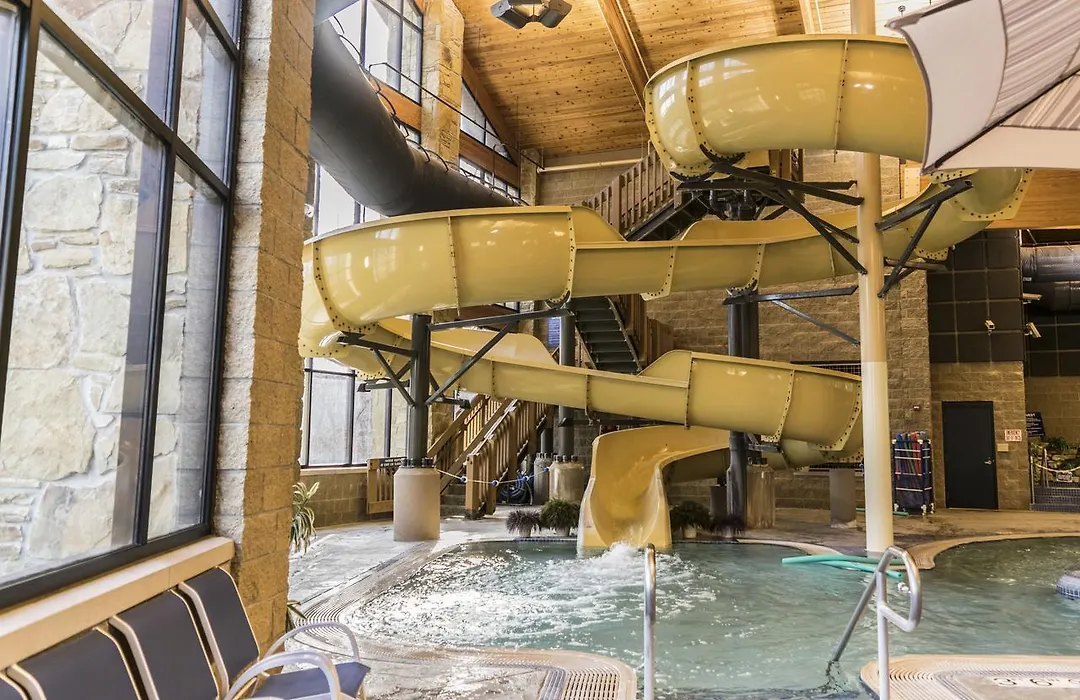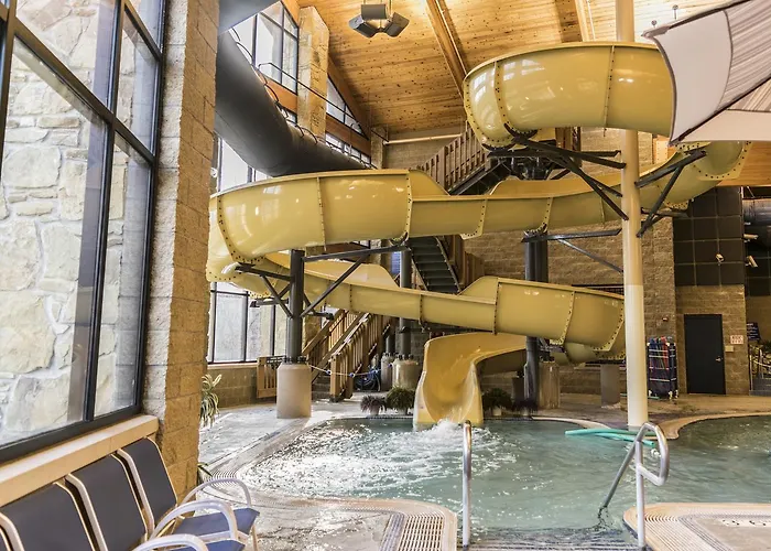 Abe Martin Lodge & Cabins features an indoor water park with twisting slides and lazy rivers, along with an Olympic-size swimming pool. Guests can engage in activities ranging from hiking and mountain biking to horseback riding, facilitated by the lodge's recreational coordinator. The lodge also offers facilities for guests arriving with horses.