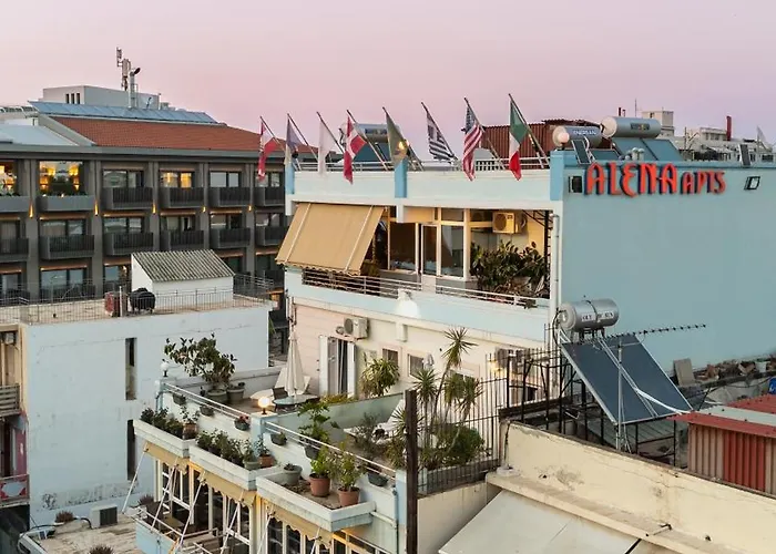 Alena Apartments, a 4-star Chania (Crete) hotel rated 8.6/10 on Booking.com, features a variety of well-equipped apartments with modern amenities. The property offers services like free bicycle rental and grocery delivery, along with recreational facilities for guests.