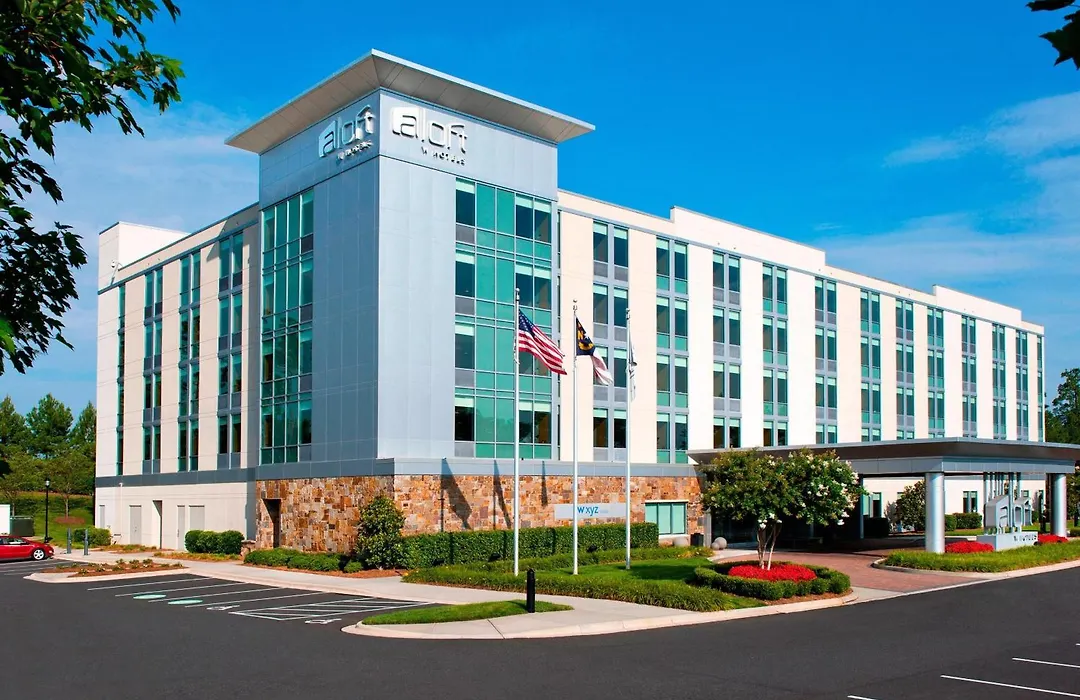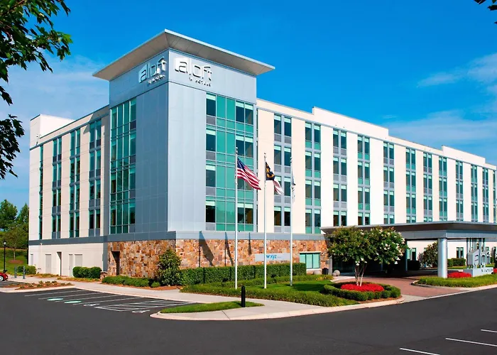 Aloft Charlotte Ballantyne offers 3-star accommodations with a rating of 9.0 on Booking.com. This pet-friendly hotel features modern amenities, including a small indoor pool and a fitness center, surrounded by lush greenery.