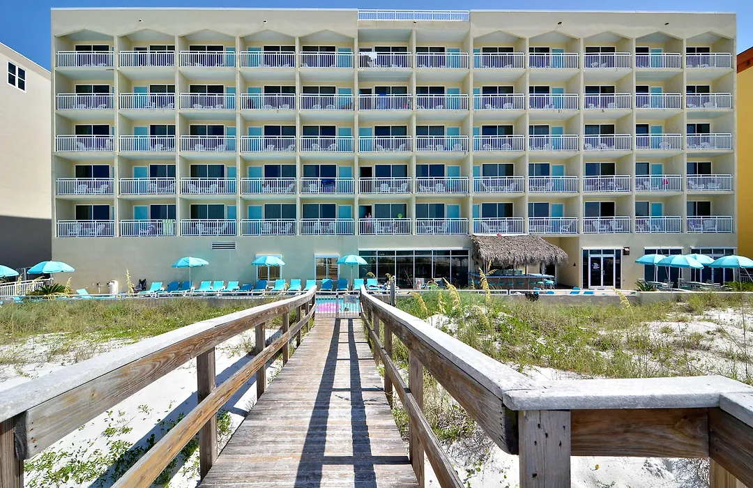 Guests can enjoy leisure activities including a seasonal outdoor pool and private beach access. Nearby attractions include the Gulfarium Marine Adventure Park and Emerald Coast Convention Center, both located 0.6 miles from the hotel.