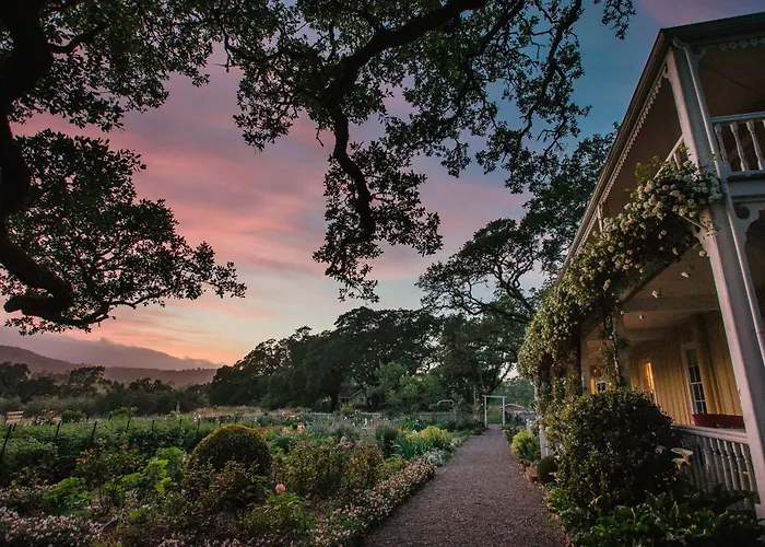 Beltane Ranch, a 4-star Glen Ellen hotel with a 9.8/10 booking.com rating, features a working vineyard and offers unique culinary experiences with estate-grown ingredients. Guests can also enjoy a preserved 19th-century roadhouse adorned with ivy and a variety of chill-out areas.
