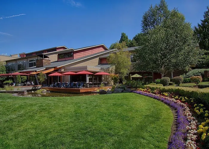 Cedarbrook Lodge, a 4-star hotel with a 9.1/10 rating on Booking.com, offers a unique Northwest setting with 18 acres of landscaped grounds, making it an urban oasis near SeaTac. Guests can benefit from complimentary amenities, including a shuttle service to Sea-Tac Airport and Wi-Fi access.