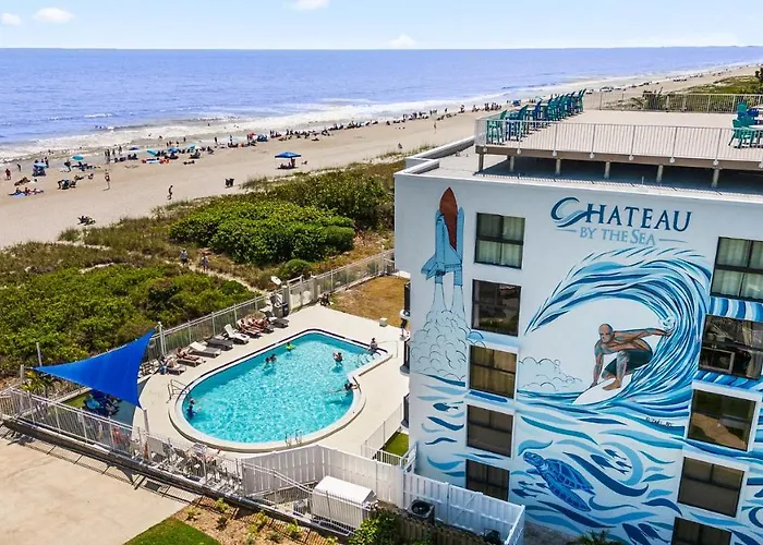 Chateau By The Sea, a 4-star Cocoa Beach hotel rated 9.0/10 on Booking.com, features direct oceanfront access and a heated year-round outdoor pool. The property offers fully equipped condos ideal for longer stays, with amenities suitable for families and those traveling with pets. Guests are just steps away from Cocoa Beach Pier.