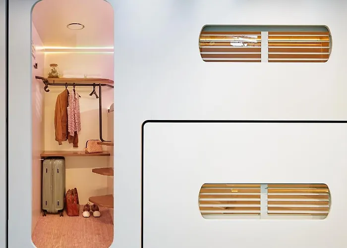 Cityhub Copenhagen, a 2-star hotel with a 9.3/10 rating on Booking.com, offers unique air-conditioned accommodations and a bar in the entertainment district. The hotel features free WiFi throughout and shared public areas with a kitchenette and living space.