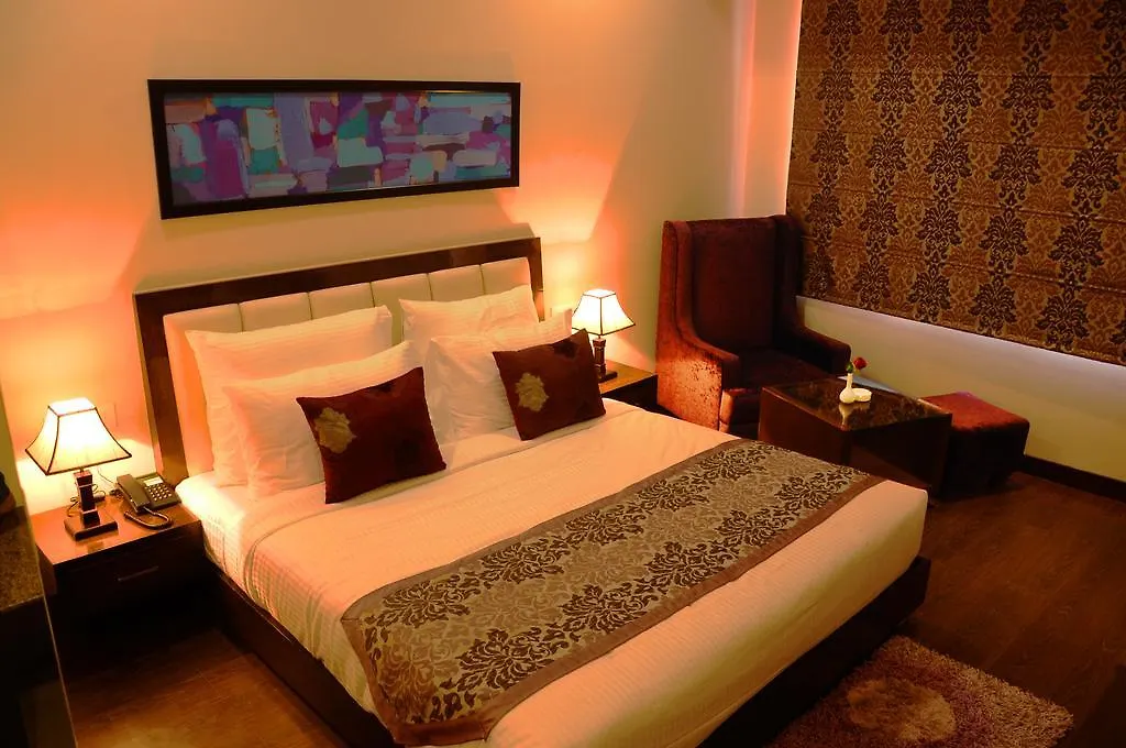 The hotel's dining options feature a fine dining restaurant and a rooftop terrace grill serving Indian and International cuisines. A complimentary continental breakfast is served daily from 7 AM.