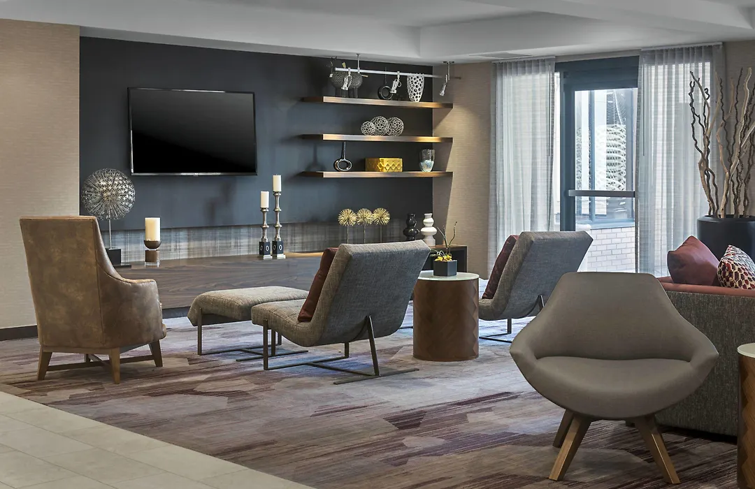 Leisure facilities include an indoor pool and a 24-hour fitness center equipped with cardio machines and weights. Guests can unwind on the outdoor patio or explore nearby attractions like Liberty Science Center and the Statue of Liberty. The hotel is positioned within the Newport mixed-use community offering diverse retail and entertainment.