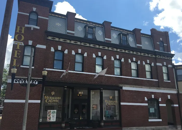 Hermann Crown Suites, a 3-star hotel with a 9.0/10 Booking.com rating, offers air-conditioned accommodations with free WiFi and kitchenettes. Amenities include a shared lounge, garden, and the historical Hermann 1837 Cellar Bar, known for its Missouri craft beers and local wines.