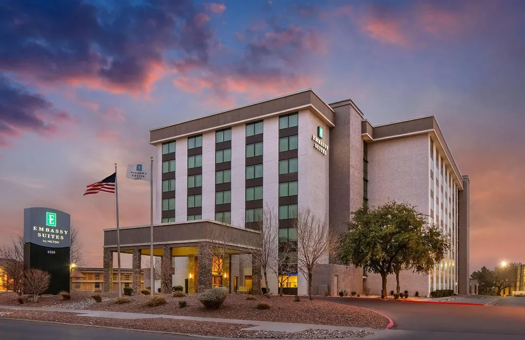 Embassy Suites by Hilton El Paso features a complimentary cooked-to-order full breakfast and an evening reception with light snacks and beverages. This 3-star El Paso hotel provides amenities such as an indoor pool, fitness center, and event space for corporate meetings or weddings.