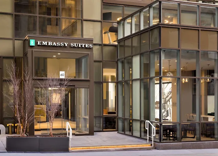 Embassy Suites By Hilton New York Manhattan Times Square is a 4-star hotel offering amenities such as a fitness center, business center, and free made-to-order breakfast. The property features the Heist Restaurant & Lounge and the seasonal Skylawn terrace lounge for dining and socializing.