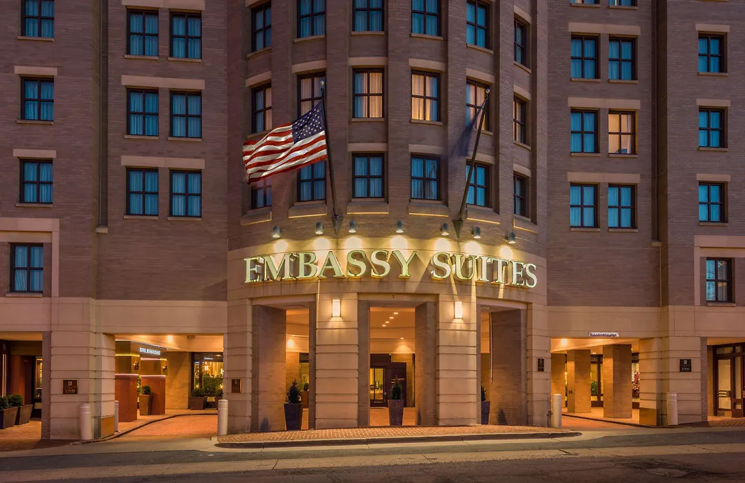 Leisure amenities include an indoor pool and a fitness center. Embassy Suites also offers meeting facilities measuring 6234 square feet, accommodating business needs and events.