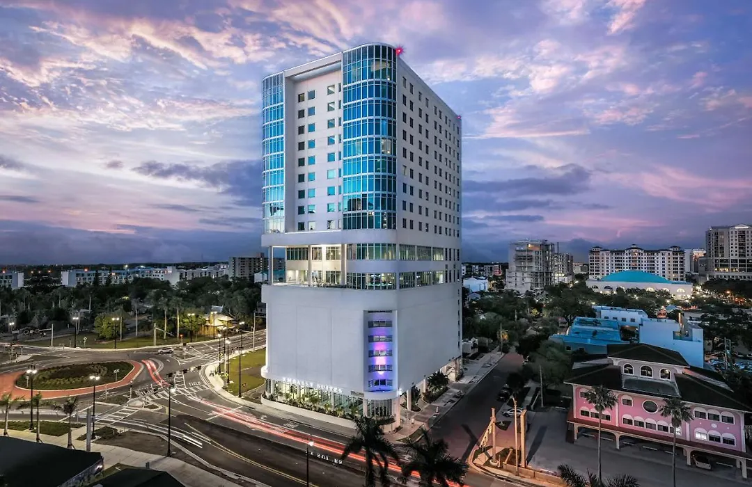 Leisure amenities include an outdoor pool and a 24-hour fitness center. The property is within walking distance of attractions like the Sarasota Convention Center and the Marie Selby Botanical Gardens.