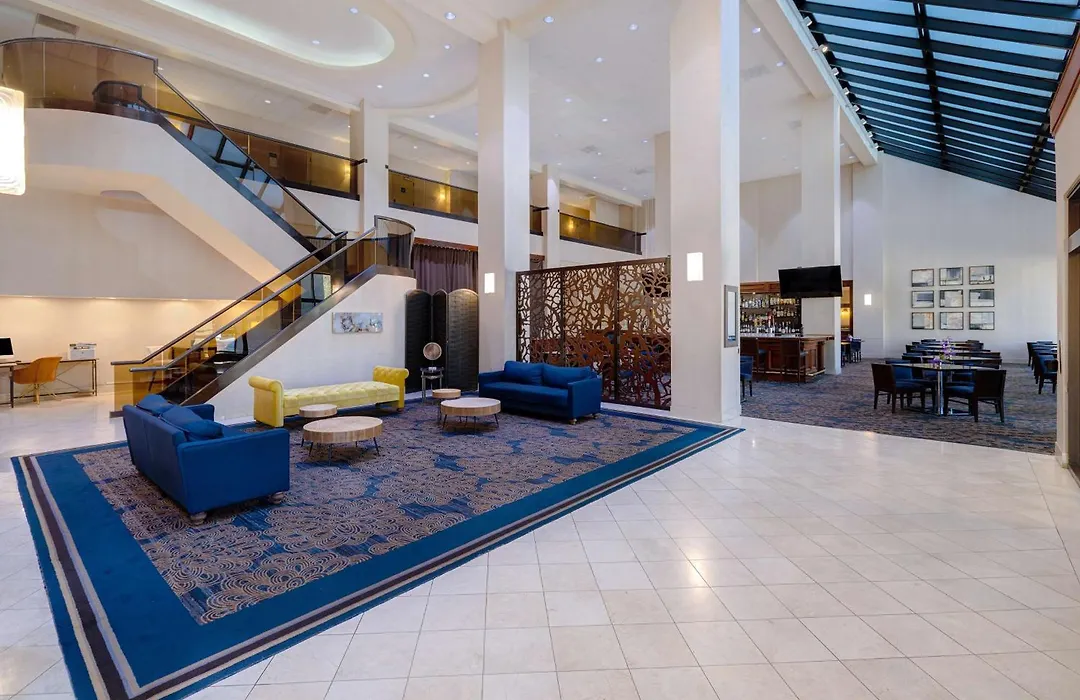 Rooms at Embassy Suites are designed with comfort and convenience in mind, featuring air conditioning, premium bedding, and laptop-friendly workspaces. Guests can choose from newly redesigned two-room suites or studio suites, each equipped with HD TVs, WiFi, a coffee machine, a fridge, and a microwave.