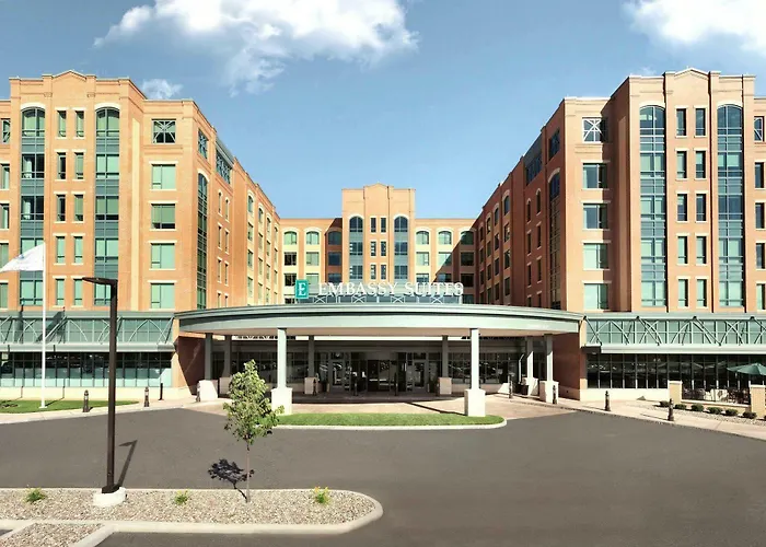 Dining options at the Embassy Suites include the award-winning Diamond Club Grill, serving a menu of American classics such as steak and seafood. Nearby dining options include Dizzy Chicken Wood Fired Rotisserie and The West Side Sports Bar & Grill, both within 0.2 miles.