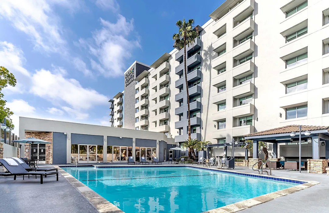 Leisure amenities include a fitness center open 24/7 and a heated outdoor pool available from 6 AM to 11 PM. Guests can also explore nearby attractions such as Fox Hills Park, which has picnic spots and recreational courts.