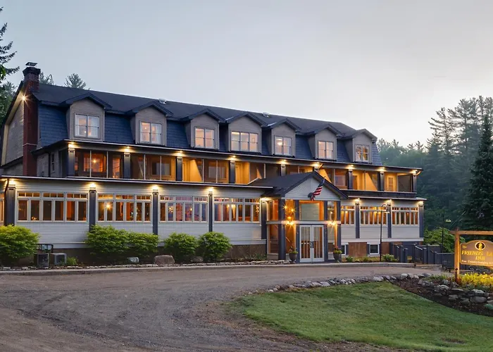 Friends Lake Inn is a 5-star Adirondack hotel offering upscale accommodations with onsite dining and direct access to nature trails. Notable features include a tranquil setting and romantic room options suited for couples. Rated 7.9/10 on Booking.com, it provides a serene retreat surrounded by forest and lakes.