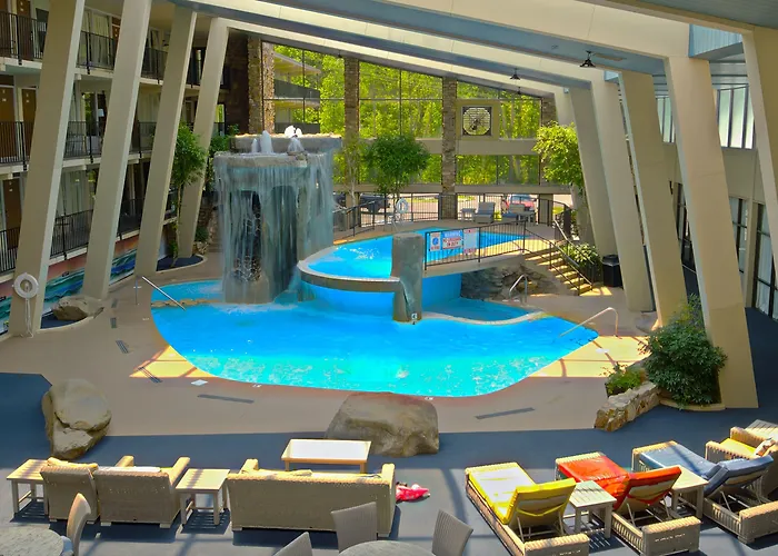 Glenstone Lodge, a 3-star Gatlinburg hotel rated 8.3/10 on Booking.com, offers spacious accommodations and family-friendly amenities. The property features both indoor and outdoor pools, along with event spaces for group gatherings. It is just half a mile from Great Smoky Mountains National Park.