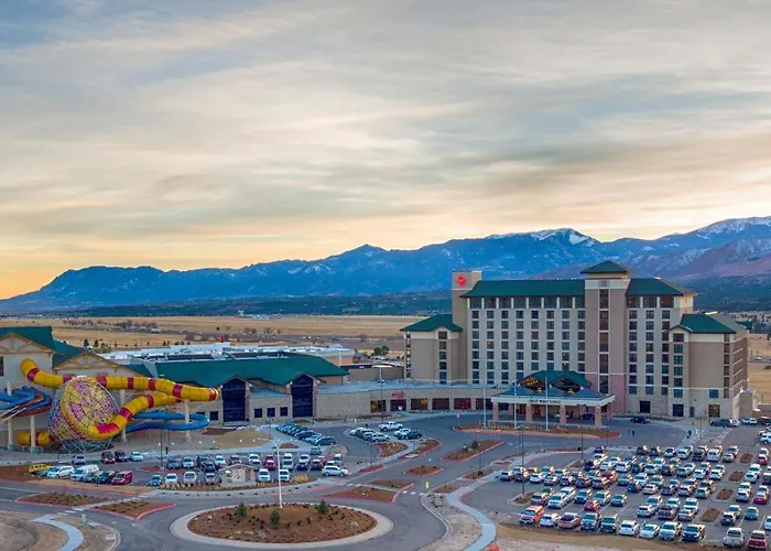 Great Wolf Lodge Colorado Springs features an indoor water park kept at a warm 84 degrees year-round and offers family-friendly accommodations with various suite styles for up to 12 guests. This 4-star Colorado Springs hotel includes dining options, activities, and entertainment for all ages under one roof.