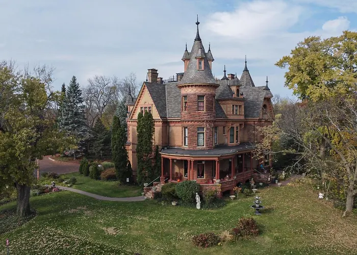 Henderson Castle Inn offers a unique experience in a real-life castle setting, featuring a rooftop hot tub and a historic wine cave. This 3-star Kalamazoo hotel ensures guests enjoy a blend of modern amenities with Victorian architecture, alongside diverse dining options led by Master Chef François Moyet.