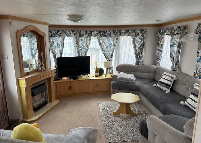 Hilltop Hideaway 2 Bed Caravan With Panoramic Town Scenery In Aberystwyth Holiday Village F8 offers a mobile home accommodation with city views and amenities suitable for families. The property includes a well-equipped kitchen and is rated 8.8/10 on Booking.com.