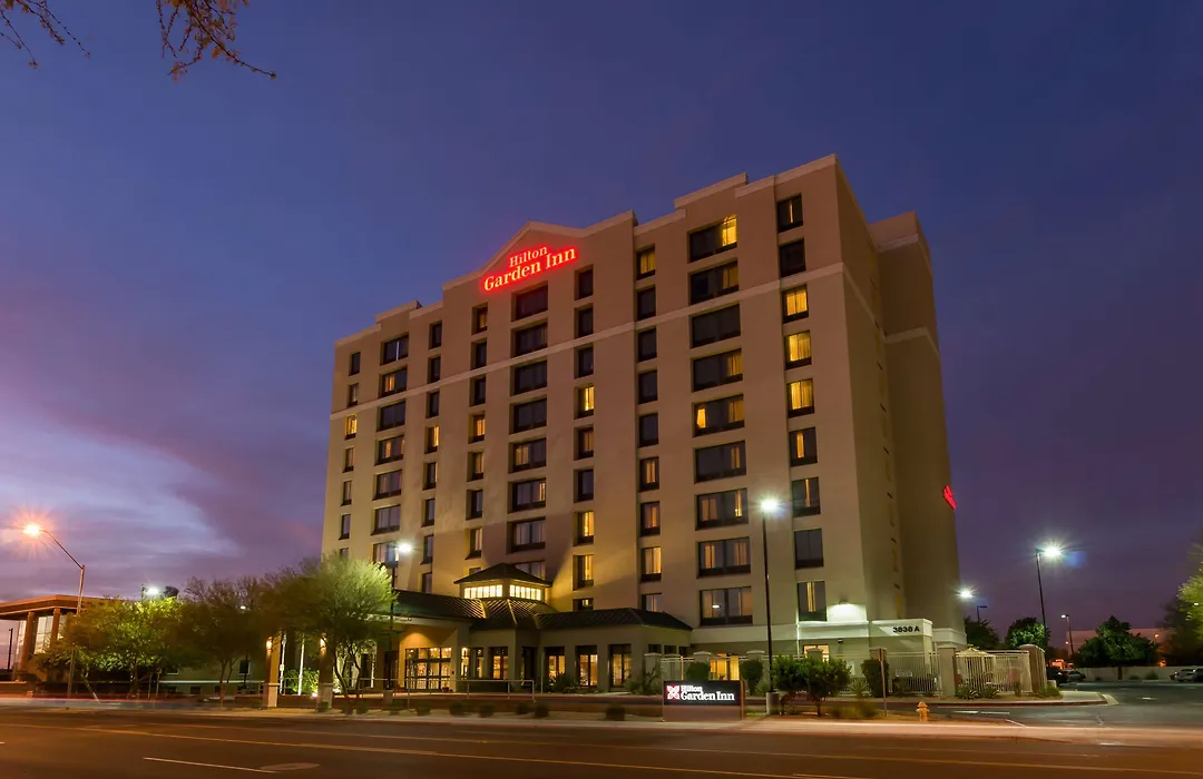 Hilton Garden Inn Phoenix Airport North, a 3-star hotel with an 8.1/10 rating on Booking.com, offers modern accommodations featuring an outdoor heated pool and on-site dining options. Guests can take advantage of complimentary services, including a 24-hour airport shuttle to Phoenix Sky Harbor International Airport.