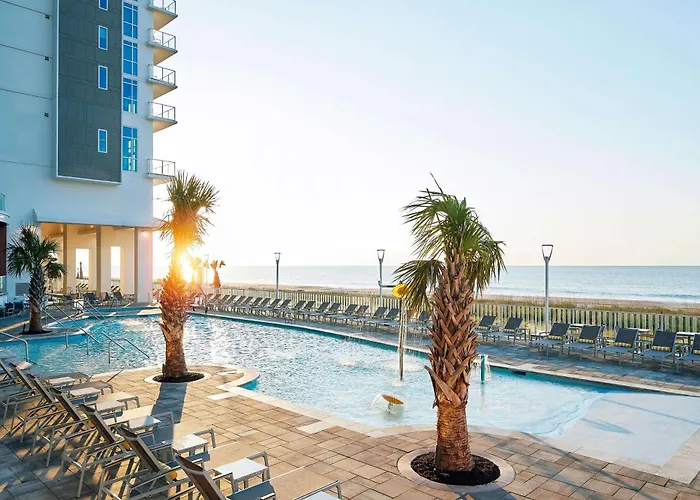 The hotel is within a 3.1 miles distance from Myrtle Beach International Airport and offers convenient access to nearby attractions such as the Myrtle Beach Boardwalk and Broadway at the Beach. Guests can explore numerous dining options and shops within close proximity, such as Pier 14 Restaurant & Lounge and RipTydz Oceanfront Grille & Rooftop Bar.