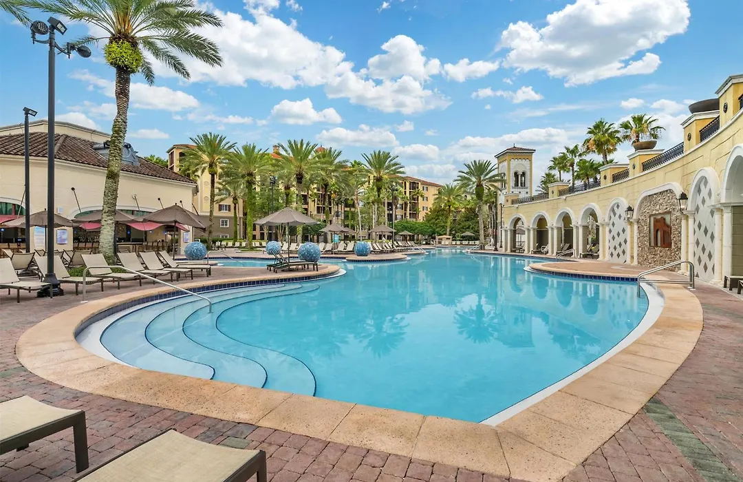 The Lake Buena Vista hotel features a Grand Pool Complex with multiple swimming pools and a fitness center. Nearby attractions include World of Disney (1.9 miles away) and Dolphin Lagoon (1.9 miles away), providing opportunities for both leisure and exploration.