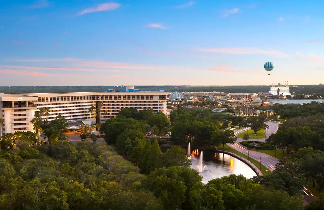 Guests can enjoy two heated outdoor pools, including a large outdoor pool area with a poolside bar. The hotel offers continuous shuttle service to all Disney parks and features ample outdoor spaces.