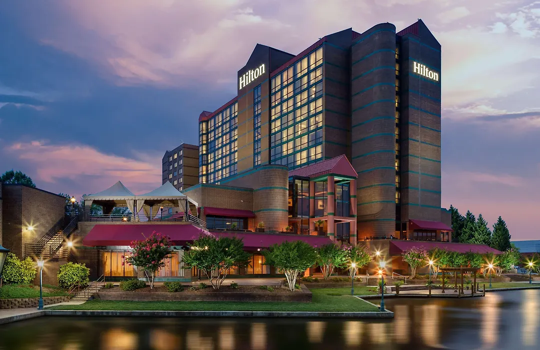 Hilton Charlotte University Place features a seasonal outdoor pool, lakeside setting, and casual on-site dining at Edgewater Bar and Grille. This 3-star Charlotte hotel boasts over 20000 square feet of event space, accommodating groups up to 600.