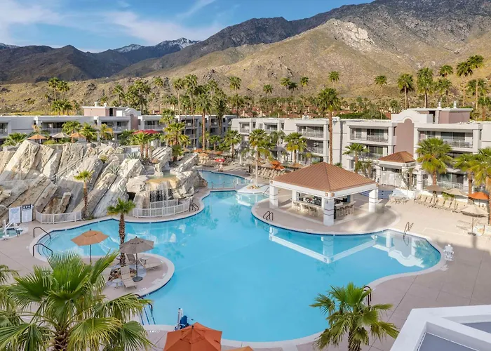 Guests can enjoy leisure activities within the resort, including relaxing at the day spa or swimming in the outdoor pools. Outdoor attractions like Joshua Tree National Park and the Palm Springs Aerial Tramway can be explored, along with the Children's Discovery Museum of the Desert nearby.