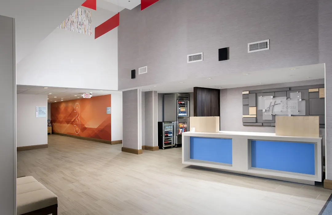 Spacious guest rooms at Holiday Inn Express include options with one king bed or two queen beds, each featuring a work desk, in-room safe, Keurig coffee maker, microwave, mini fridge, and flat-screen TV. Complimentary Wi-Fi is available to all guests.