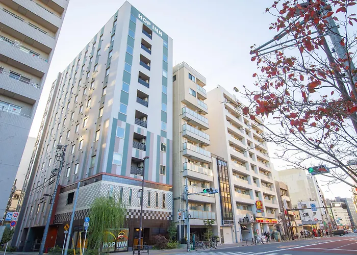 Hop Inn Tokyo Asakusa, a 3-star hotel with an 8.7/10 rating on Booking.com, offers modern accommodations with free WiFi. Amenities include air conditioning in rooms and a 24-hour front desk.