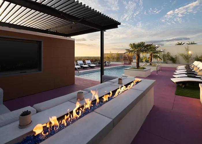 AC Hotel By Marriott Gainesville Downtown is a 4-star hotel featuring modern design and amenities. Facilities include an outdoor swimming pool, fitness center, and a restaurant serving Spanish-inspired cuisine. Located adjacent to the University of Florida campus, it offers seamless access to local attractions.