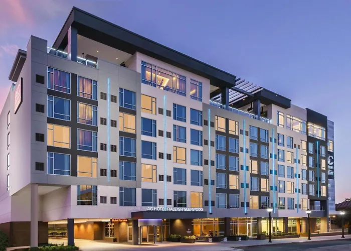 Ac Hotel By Marriott Raleigh Downtown is a 3.5-star hotel featuring modern design and exceptional amenities. This Raleigh hotel offers a rooftop bar with stunning city views and a European-inspired breakfast for guests. Other facilities include a coffee shop and fitness center.