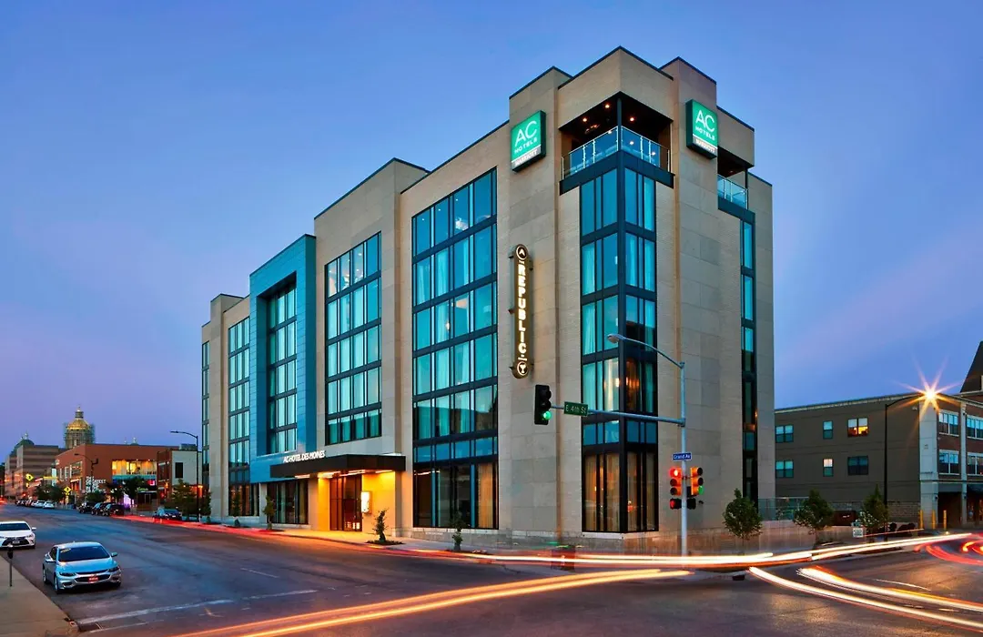 AC Hotel By Marriott Des Moines East Village is a 3-star hotel featuring a modern design and high-rated services with a score of 9.1/10 on Booking.com. Amenities include free Wi-Fi, a fitness center, and an on-site restaurant, The Republic on Grand, which offers a sixth-floor outdoor lounge.