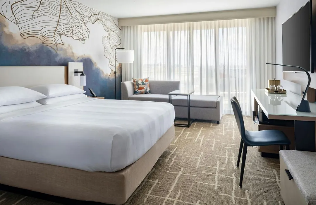 Rooms at Tampa Airport Marriott come equipped with soundproof windows, plush bedding, and Smart TVs with Hulu and Netflix. Mini-refrigerators, ample desks, and free Wi-Fi are standard in all accommodations. Concierge-level rooms offer exclusive Club Lounge access for complimentary breakfast and snacks.