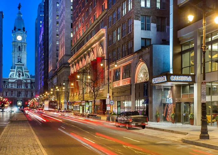 Cambria Hotel Downtown-Center City offers upscale accommodations within the Rittenhouse Row district, featuring a rooftop restaurant with city views and a fitness center. This 4-star Philadelphia hotel has 223 air-conditioned rooms equipped with modern amenities and complimentary wireless Internet access.