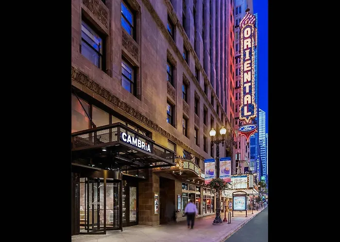 Cambria Hotel Chicago Loop - Theatre District offers 4-star accommodations within the iconic Oriental Theatre building, featuring modern amenities and on-site dining options. The hotel provides a fitness center, business services, and convenient access to public transportation.