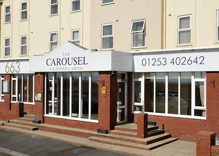 Carousel Hotel offers a prime sea front location with stunning views and a range of amenities, including 92 en-suite bedrooms and a convenient Café Bar 663. This 3-star Blackpool hotel is rated 8.7/10 on Booking.com, providing comfort for both leisure and business travelers.