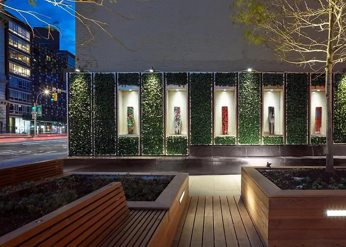 Citizenm New York Bowery offers affordable luxury in a hip setting with modern amenities and vibrant design. Guests benefit from an on-site rooftop bar, a fitness center, and 24-hour self-check-in. This 4-star New York hotel provides a unique experience with local art displays and eclectic dining options.