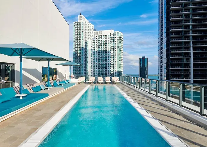 CitizenM Miami Brickell, a 4-star hotel with an 8.7/10 rating, features an outdoor swimming pool, a fitness center, and vibrant dining options. The hotel is situated in Brickell, a prominent Miami area known for its commercial and residential appeal.