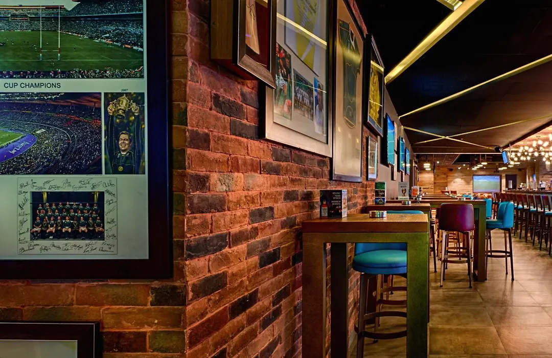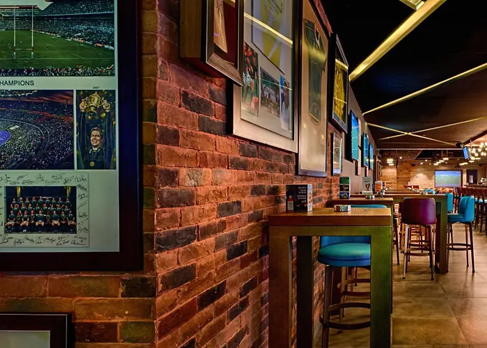 Dining options include The Huddle Sports Bar, Claypot Indian restaurant, Sizzling Wok Pan Asian restaurant, City Café for all-day dining, and a 24-hour Lavazza café. The Aqua Pool Bar provides refreshments to guests by the pool.