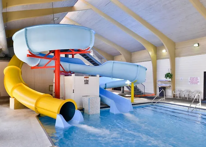 The hotel includes an indoor pool with two amusement-style water slides and a hot tub, providing recreational options for families. A fitness center is also available, along with a business center equipped for corporate needs.