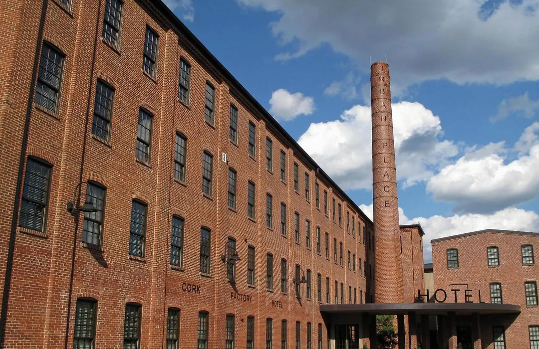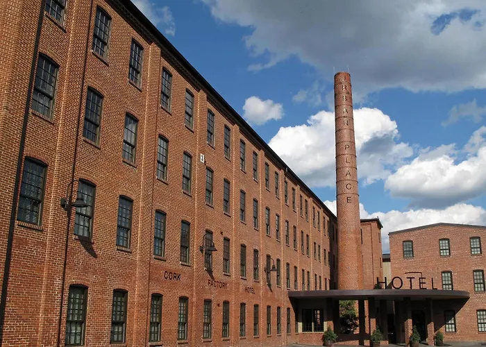 Cork Factory Hotel, a 3-star hotel with an 8.7/10 rating on Booking.com, offers stylish accommodations in a historic setting that once housed the Armstrong Cork and Kerr Glass companies. The hotel features extensive event spaces, an in-house culinary team, and accessible amenities.
