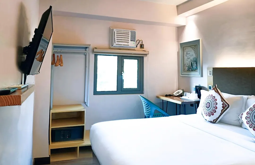 Double rooms at Cuna Hotel are located in the Annex building, featuring one queen bed, a fully-furnished bathroom, and a 32-inch flat-screen TV. The triple room has a king-sized bed and a single bed, suitable for family and group accommodations.