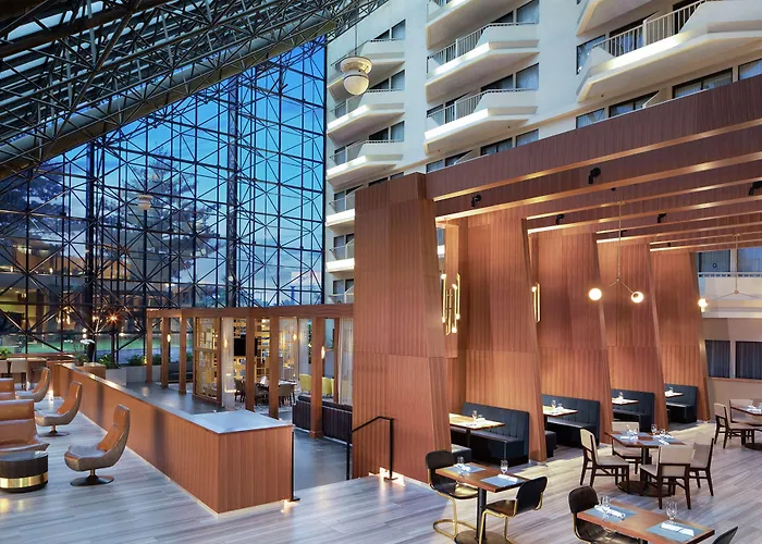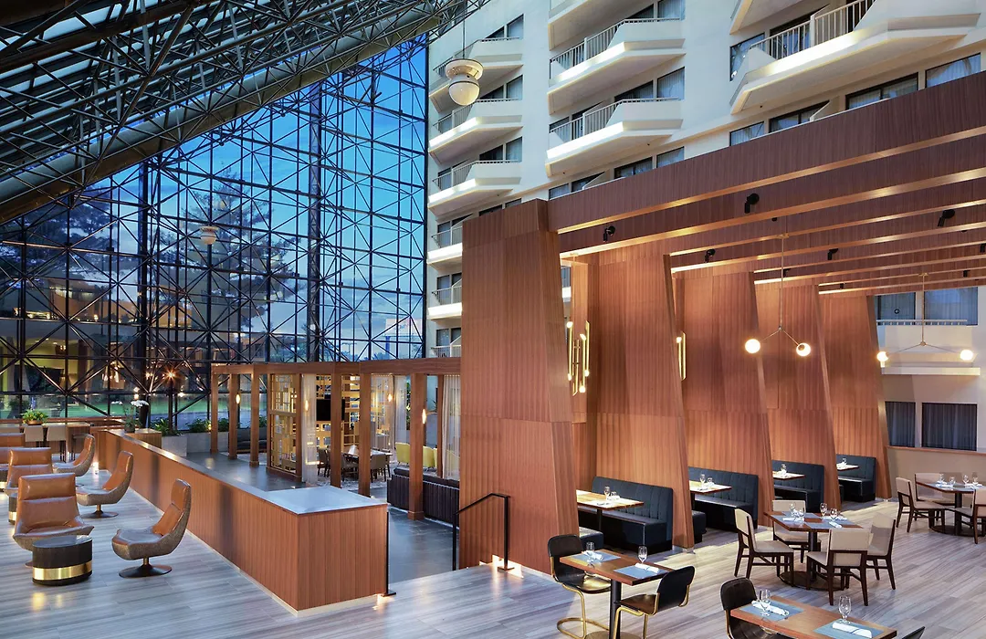 Dining options include Bistro 128, which serves a breakfast buffet featuring hot and cold cereals, fresh fruit, yogurt, and specialty breads, along with a selection of main meals and room service. The hotel's Starbucks coffee bar offers a variety of beverages and light snacks.