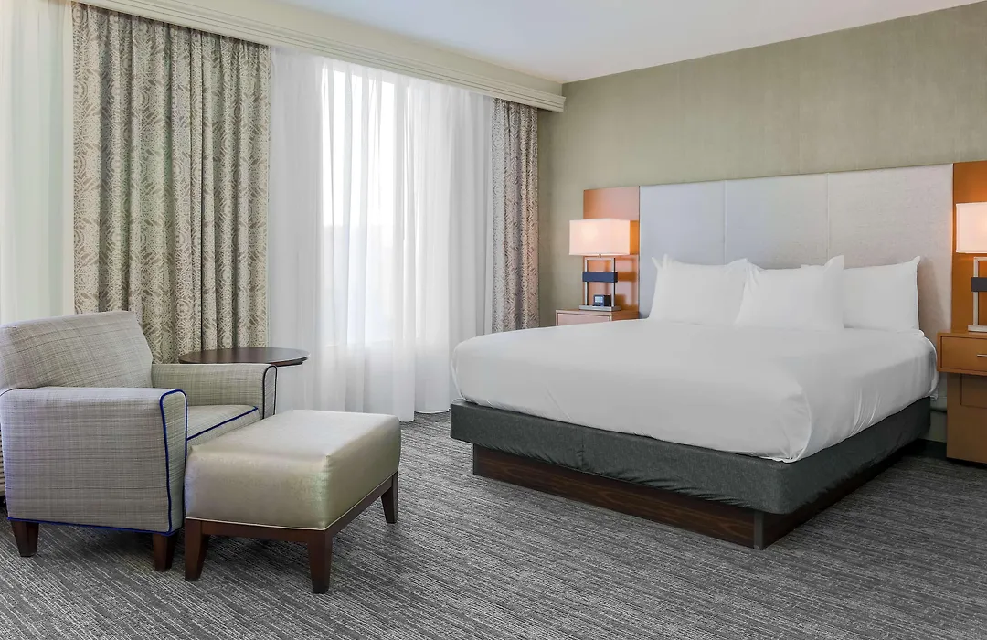 The hotel features over 4500 square feet of flexible meeting space, including a ballroom that accommodates up to 450 guests. Business services and amenities such as a business center are also available for guest convenience.