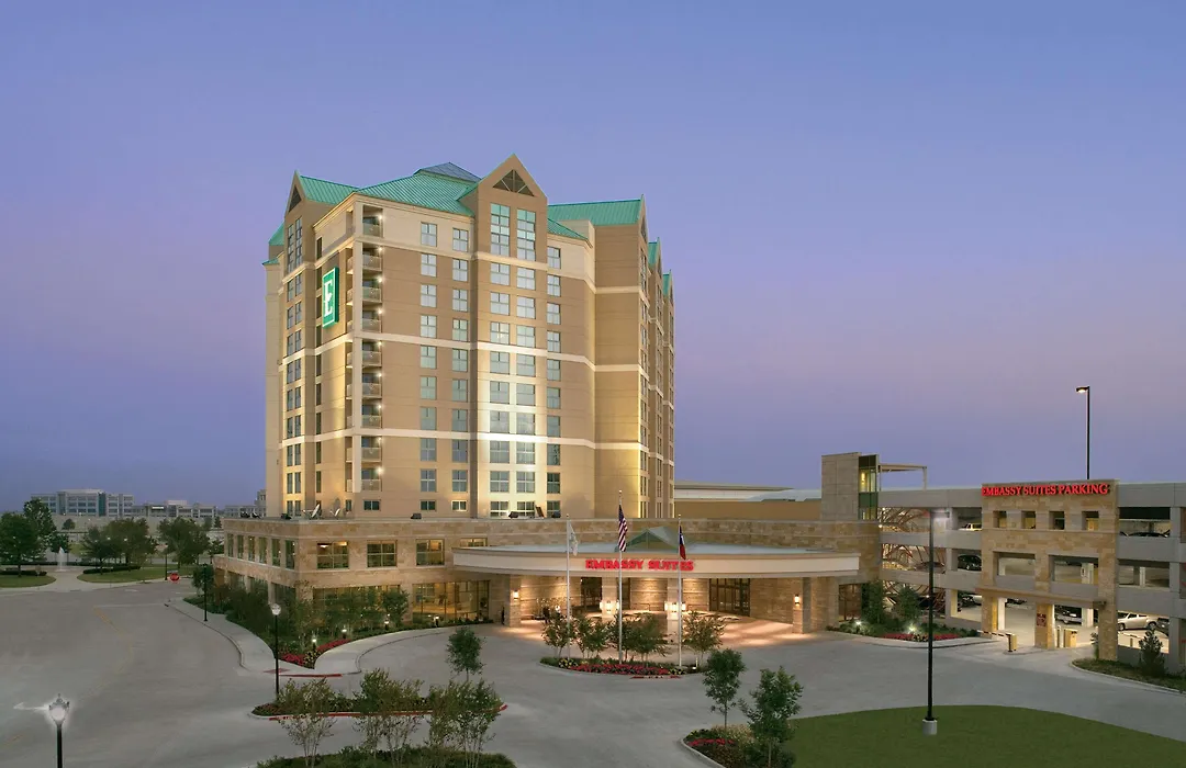 Embassy Suites By Hilton Dallas Frisco Hotel & Convention Center is a 4-star hotel featuring an indoor pool, a fitness center, and over 90000 square feet of meeting space. This pet-friendly hotel offers a made-to-order breakfast and complimentary evening receptions, ideal for business or family stays.