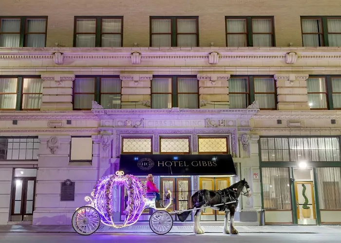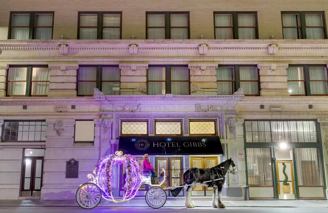 Hotel Gibbs Downtown Riverwalk offers stately guest rooms with original hardwood floors and spa-inspired showers. The accommodations include Queen Executive, King Executive, and Junior Suites with views of the Alamo and modern amenities like high-speed Wi-Fi and a 50' Samsung LED TV.