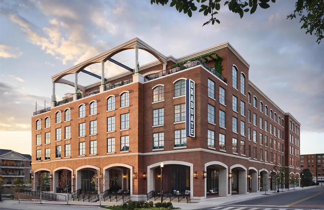 Graduate By Hilton Auburn, Al is a 4-star hotel featuring free bikes, a fitness center, and on-site dining options. Guests can unwind on the terrace and enjoy spacious accommodations with various amenities. The hotel has earned a rating of 9.2/10 on Booking.com.