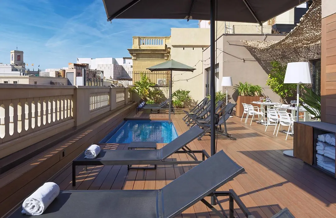 H10 Urquinaona Plaza (Adults Only) is a 4-star Barcelona hotel featuring a blend of modern design and preserved Novecentista details. The establishment offers amenities such as a roof terrace with a seasonal plunge pool, a lounge with a library, and the Novecento Restaurant.